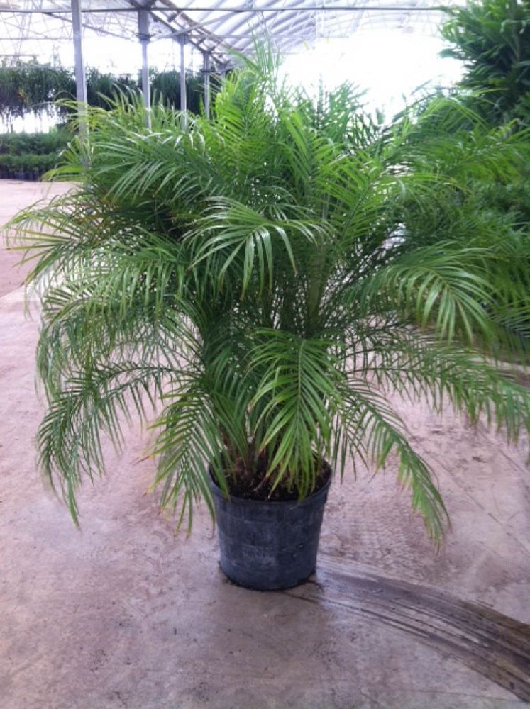 Robellini Palm is a dwarf palm tree that will reach heights of only 6 to 12 feet at maturity but, in spite of its diminutive size, will have a bushy crown of graceful 3-foot long palm leaves and a span of up to 10 feet across.
